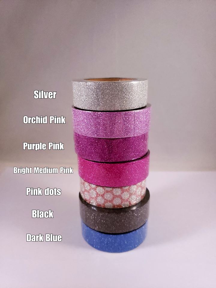NOTE- Pink and purple Floral, Purple Heart, Black, Gold, and Purple Zebra are 15mm x 5m