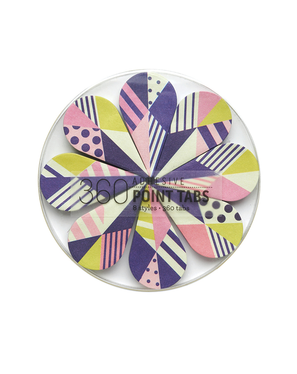 Vibrant and functional, these sticky-backed point tabs are kaleidoscopic in color and allow you to mark and pinpoint anything on a page with specificity. Each set of 8 teardrop mini-pads will keep you organized in style