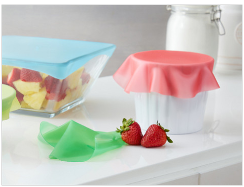 Silicone stretch lids keep food fresh by creating tight seals on bowls, plates, and containers of all kinds. The super stretchy lids can expand to two to three times their size. Reusable and non-toxic, they're safe for the oven, microwave, freezer, and dishwasher. No more searching for lost lids—and no more wasteful plastic wrap.