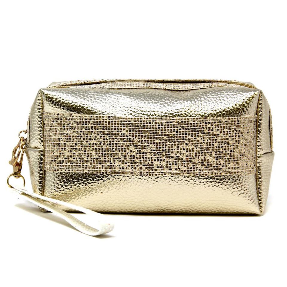 Gold Metallic Faux Leather Cosmetic Bag/Wristlet