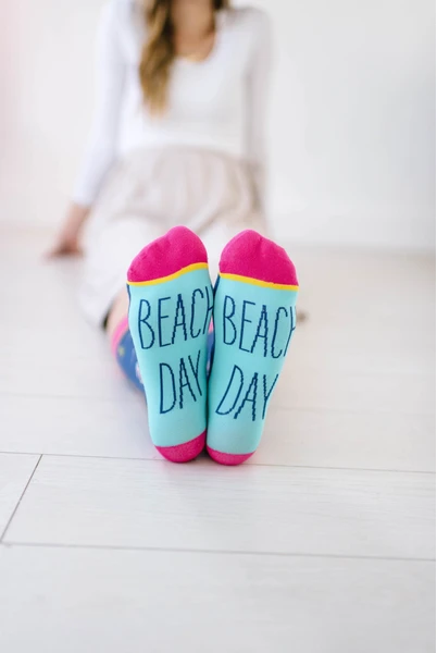 Do you find yourself dreaming of sunshine, sparkling waters and sand under your feet, regardless of the time of year? Yes? Well, so do we. That's why we created this sock commemorating summer's most popular past time--spending a day at the beach!