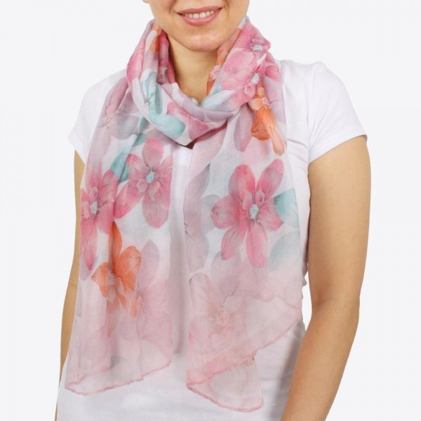 Lightweight Floral Scarf- Pink