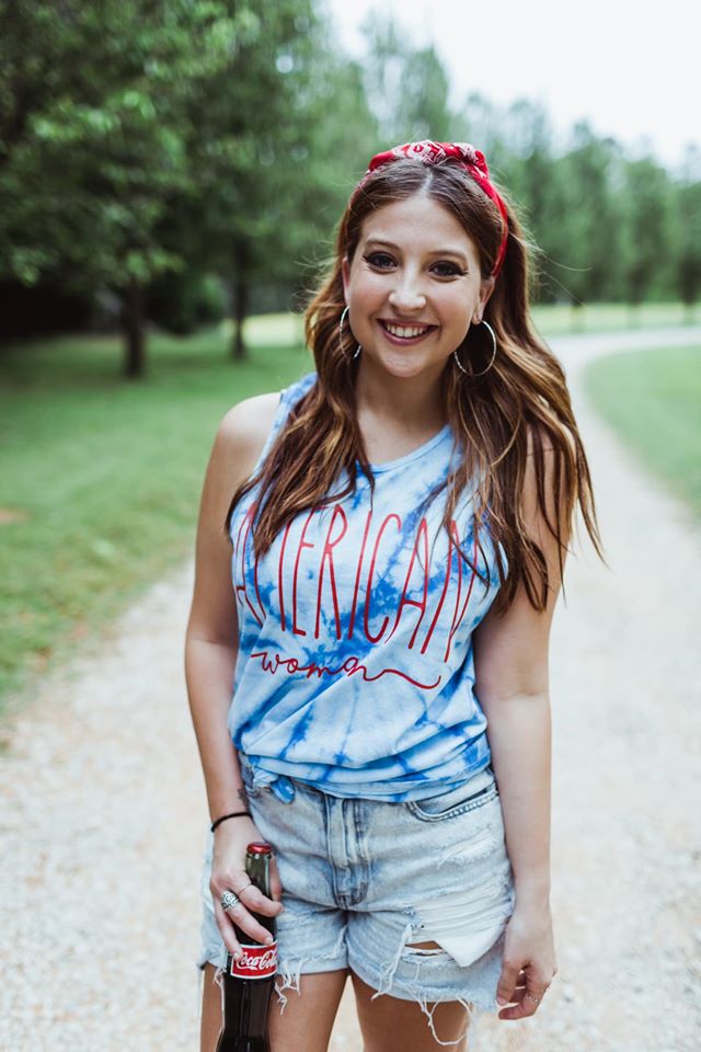made by Alabama Threads Model wearing Tank Top is a size 6 and hourglass figured 100% cotton Colortone brand shirt