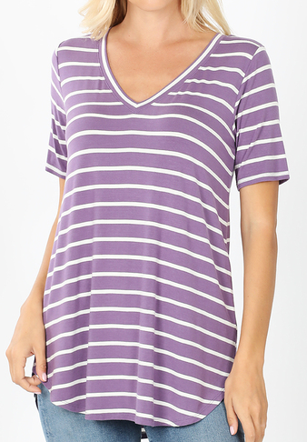 Stripe T-Shirt- Lilac Grey Small