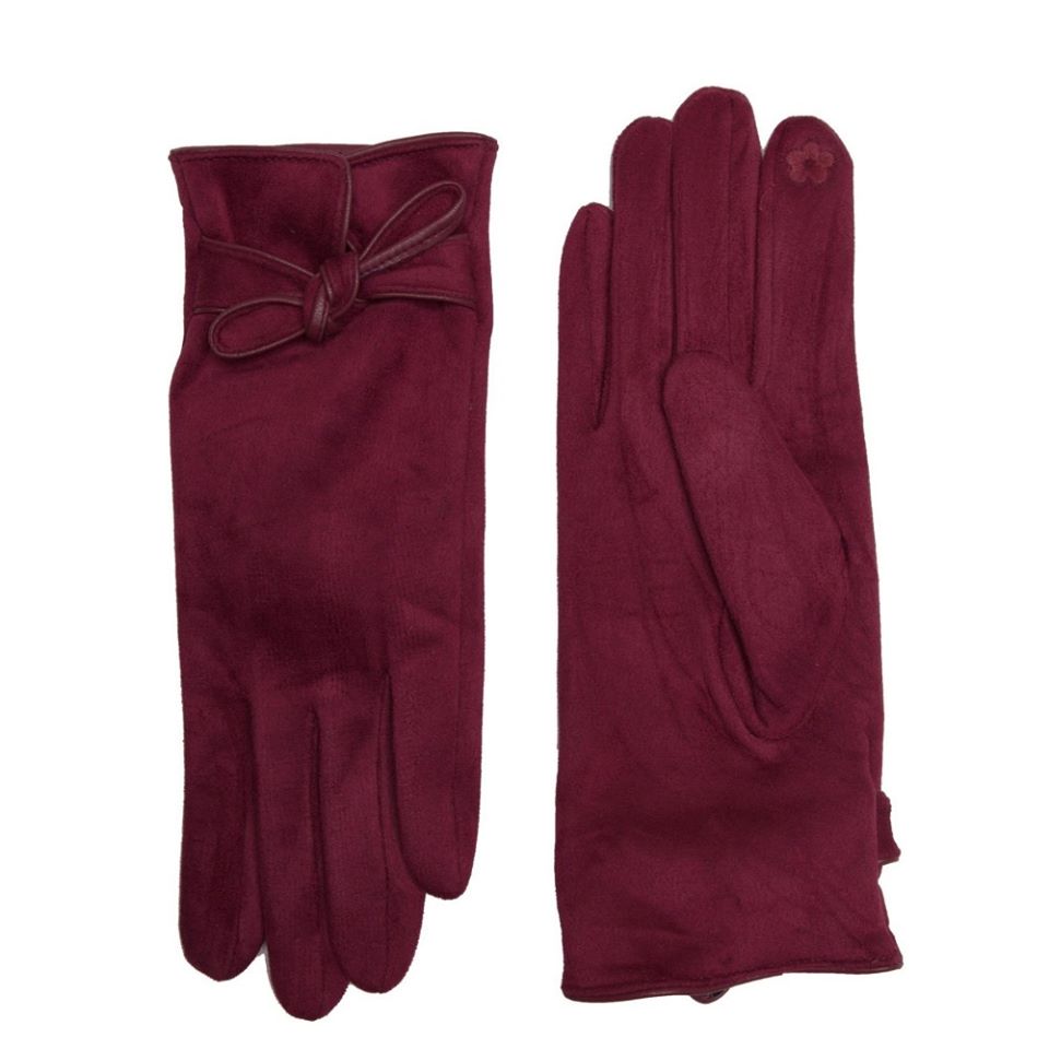 Burgundy Faux suede wrist knot touchscreen gloves One size fits most - 100% Polyester, 10% Spandex