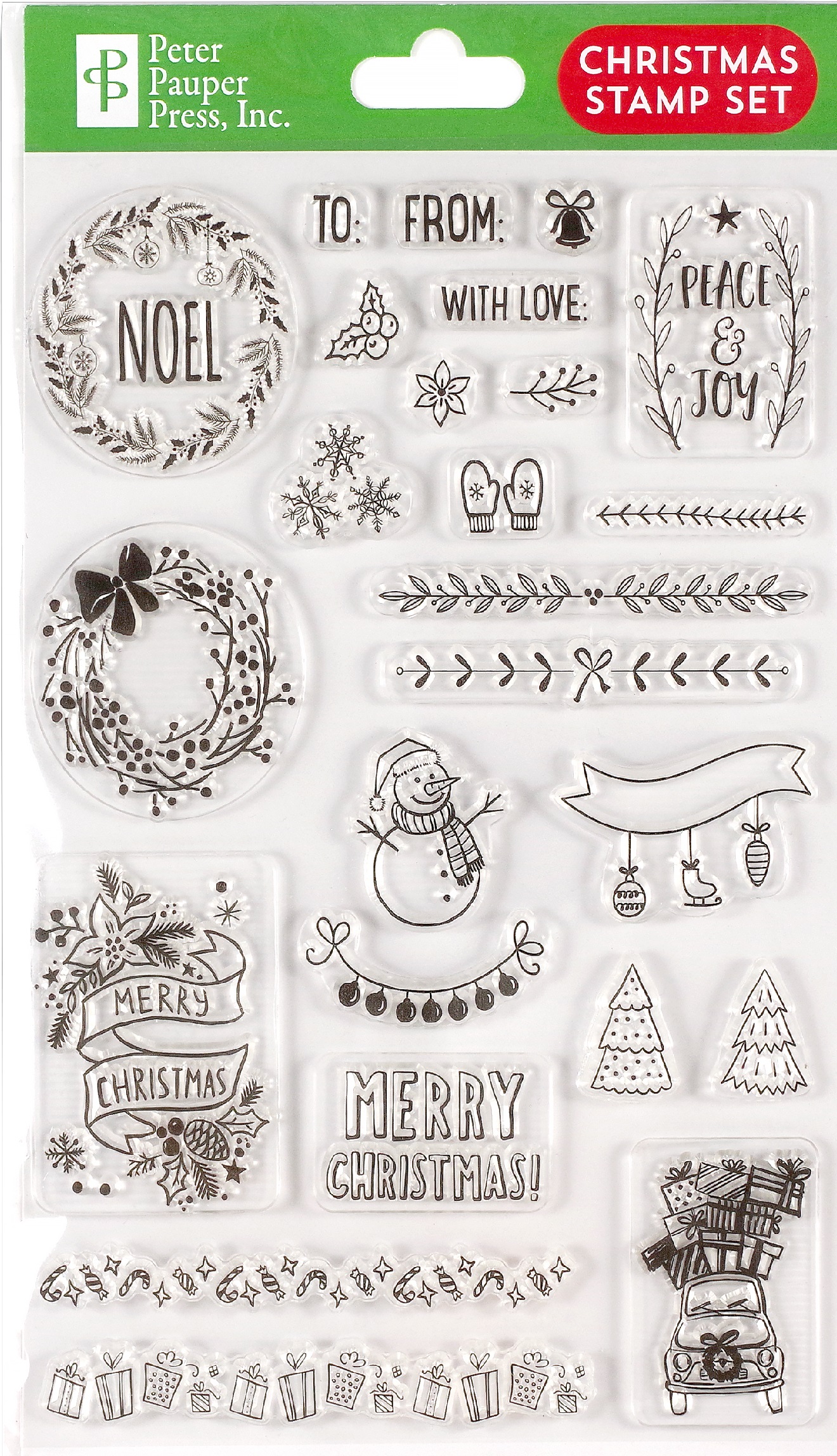 Set includes wreaths, a snowman, gift tag stamps, Christmas greetings, festive borders, and more.