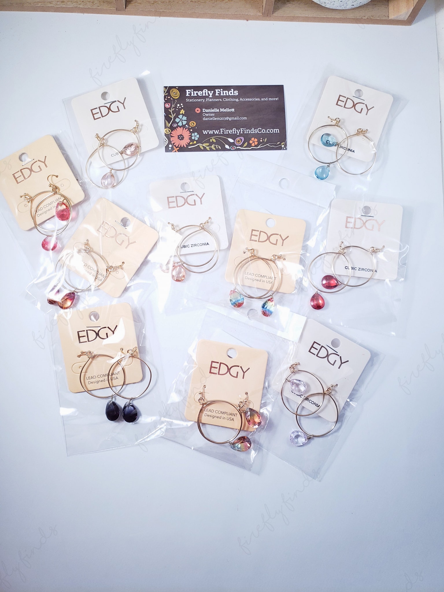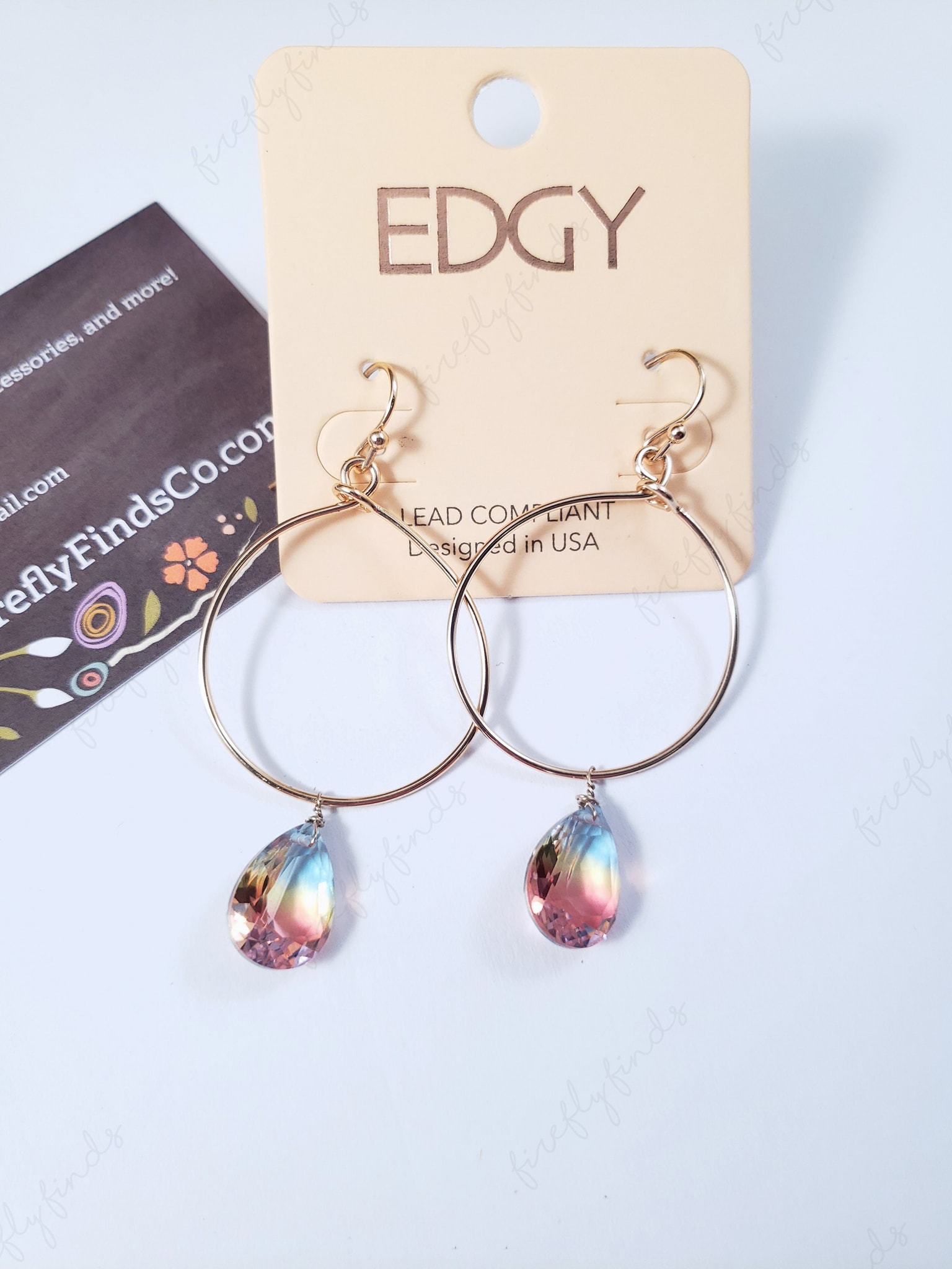 Cubic Zirconia Teardrop Drop Earrings- Rainbow Pastel Ombre