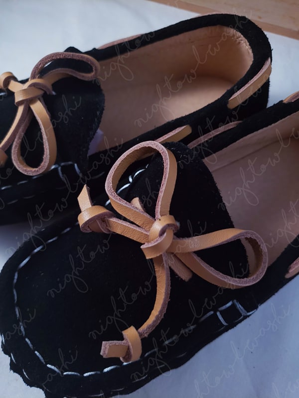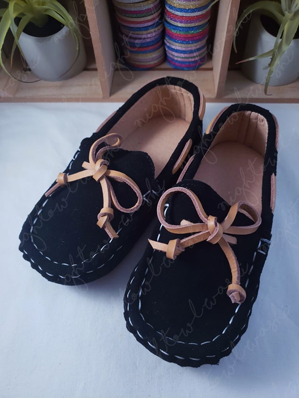 Faux Suede Slip on Shoes for Kids Black with Tan Lacing