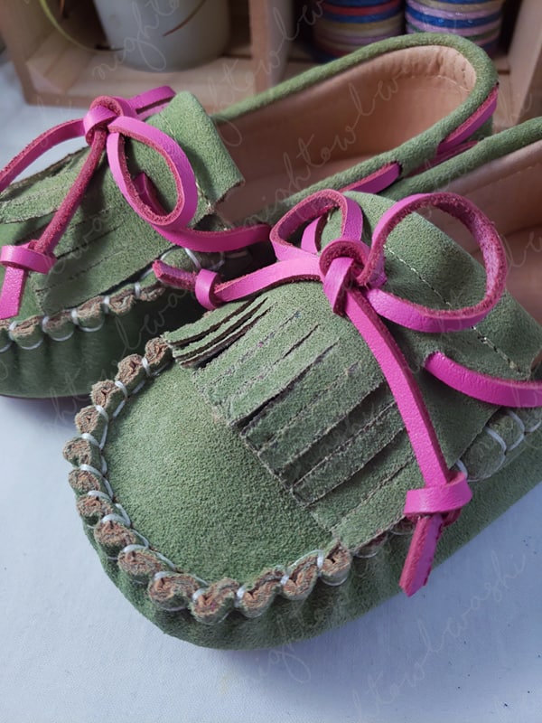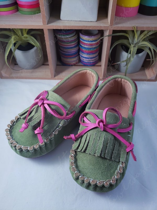 Faux Suede Slip on Shoes for Kids Green with Pink