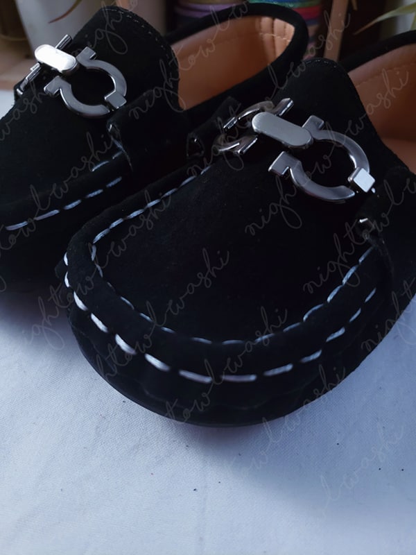 Faux Suede Slip on Shoes for Kids- Black Buckle