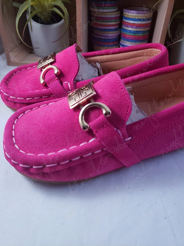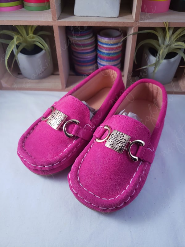 Faux Suede Slip on Shoes for Kids- Pink Buckle