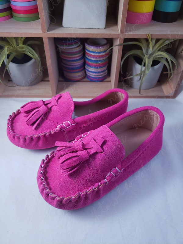 Faux Suede Slip on Shoes for Kids- Pink Tassle