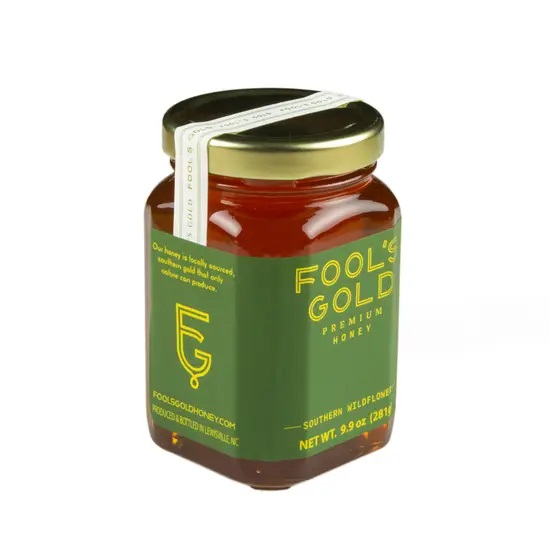 Fool's Gold Southern Wildflower honey is harvested from apiaries in North Carolina and Virginia, a region steeped in American beekeeping history and heritage, and which culinary connoisseurs recognize as the origin of some of the world's finest tasting honeys. The flavors of our Southern Wildflower honey are as varied as the seasons; which are filled with Sourwood, Wild Strawberries, Blackberries, Honeysuckle and Tulip Poplar trees bursting with nectar.