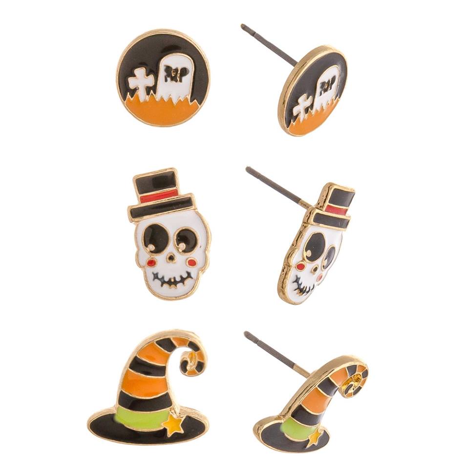 Halloween Earrings- Set of 3- Skull, hat, ghost