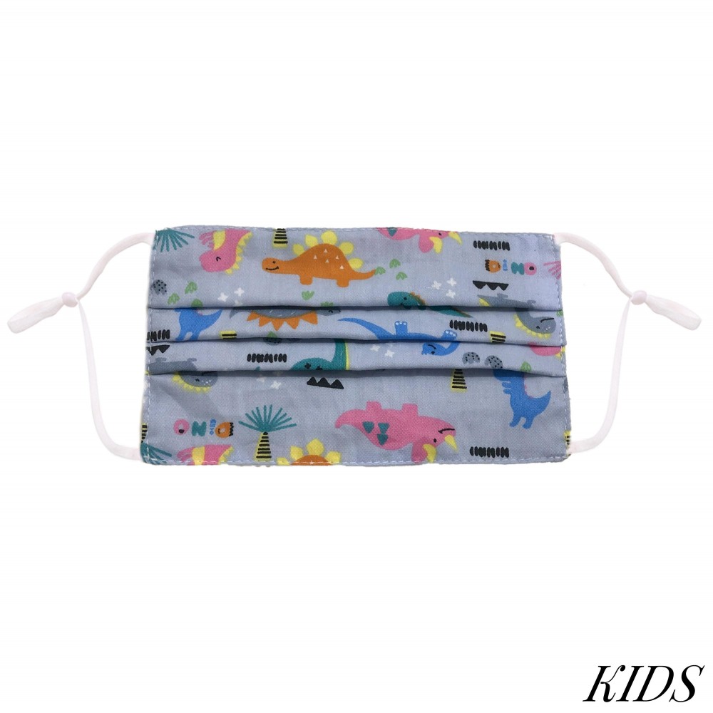 Dinosaur Pleated Fashion Face Mask Featuring Adjustable Ear Loop.